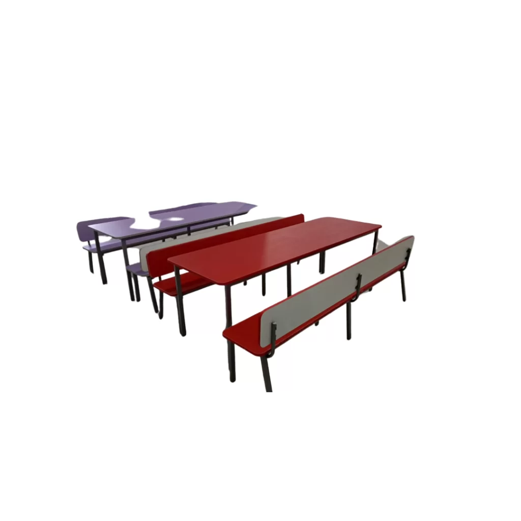 MESA DE REFEITÓRIO INFANTIL COM ENCOSTO TAMPO EM MDF 15 MM REVESTIDO EM FÓRMICA, ESTRTURA DE AÇO 50 X 30.